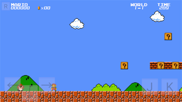 进入关卡后,左边设有左右方向的移动箭头,可用来操控角色移动;右边则配备了跳跃和攻击按键,例如按下k键就能让角色跳跃,按下j键即可发动攻击。