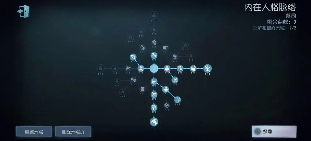 介绍:祭司苟一点,多打长洞,灵活运用长洞辅助队友转点,及时治疗残血队友,开局不被追的话辅助性很强,开局撞鬼不会玩洞就很容易凉凉,小女孩用这套辅助性也很强,怕被抓的话可以不点搏命,把左边翻板翻墙加速点满