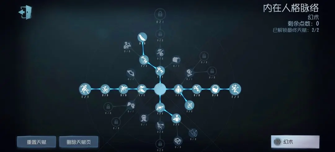 魔术师最大的优势在于集解码和溜屠夫两项buff加成。“灵活双手”增加解码速度和校准操作判定范围,自带的魔棒技能不仅能制造幻影,还能在释放后隐身一段时间且加速30%,一个技能三个效果,估计这就是第五人格的亲儿子吧。