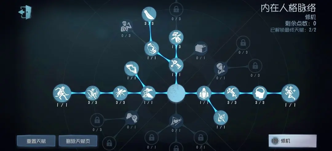 介绍:基本只打前期的修机位加点,经常开局撞鬼又不怎么会遛鬼的点这个还能救一救,飞轮概率躲一刀,还能克制渔女水汽/蜡像打胶/杰克雾刃/小丑锯子/厂长木炭等多刀屠夫面前都能抢救一下,结伴效应让掏哥帮你顶一刀,上椅还能减减速;ob位玩这套的话把寒意改成自愈,莽一点前期拉到仇恨点这个遛鬼很强势,不过不带回光返照的话后期起不来有点虚,自信玩家去掉双弹点回光返照