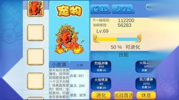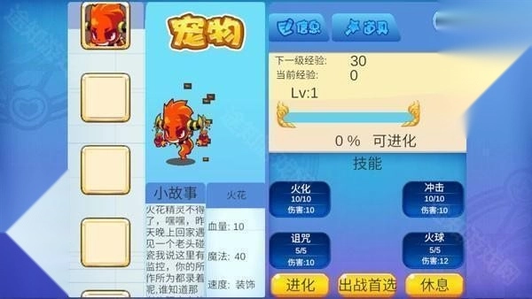 4、要是打不过其他宠物精灵,你也可以提升自己宠物的等级,进而让它进化并升级技能;