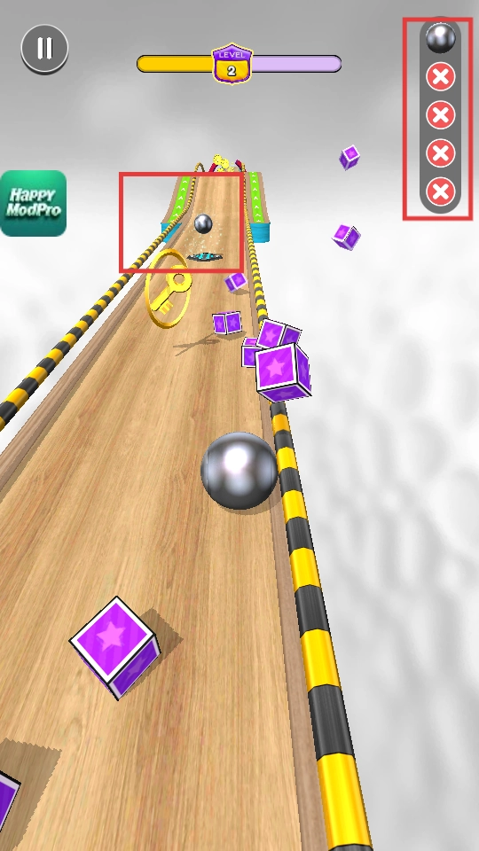 1、控制金属球在赛道上移动,收集保龄球,注意右侧的收集进度显示。