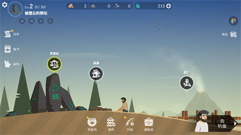 2、借助钓鱼获取资源,用以换取工具并获得钻石。