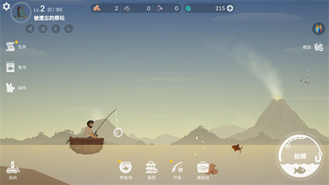 3、轻点“投掷”按钮,耐心等待鱼儿上钩,如此便能成功获得鱼。