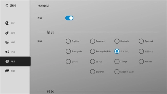 在语言一栏点击简体中文就能将游戏切换成中文。