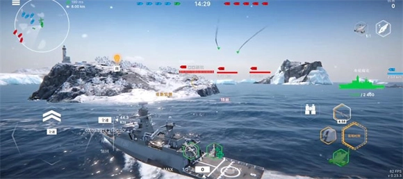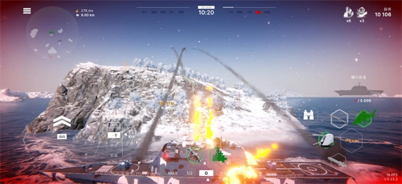 2、对战时,要优先打击航母。对于15级以下的舰船来说,直升机的火力强度甚至超过了舰船本身,常常会出现己方击沉对方舰船后,反而被对方直升机反杀的情况。战术核导弹具备范围伤害效果,能够用来攻击直升机这类空中目标。导弹的弹道高度和锁定目标的距离存在关联,如果攻击距离过近的目标,导弹飞行高度会比较低,容易撞到发射方与目标之间的掩体。