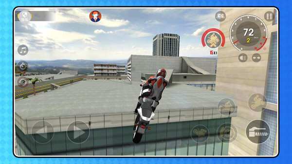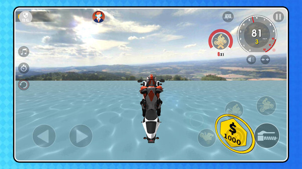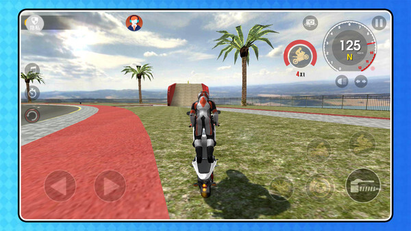1. 选择摩托车进入场景,通过虚拟按键操控加速、转向与刹车,在赛道的特殊地形上驰骋。