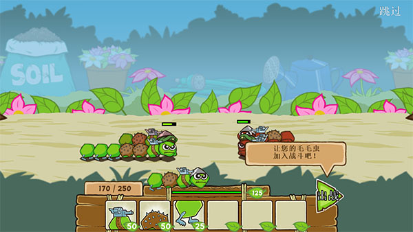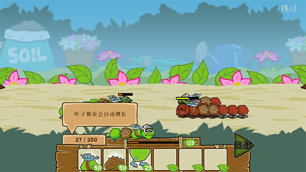 3、毛毛虫出战时需要叶子,叶子会自行增加。