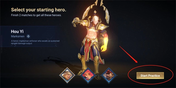 然后挑选一位英雄,接着点击【Start Practice】按钮。