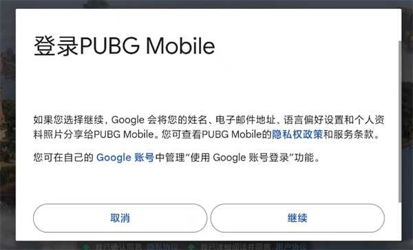 点击“Play Games”选项能够直接打开谷歌相关界面(前提是手机已安装谷歌三件套且玩家资料已填写完整),接着选择“继续”按钮就能完成注册流程。
