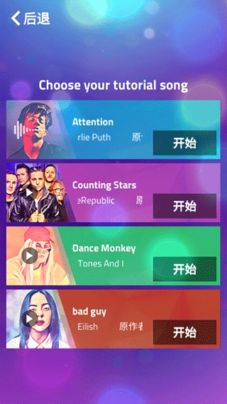 这是从简单到困难的初始曲目,会非常简单,教你如何玩这款游戏。