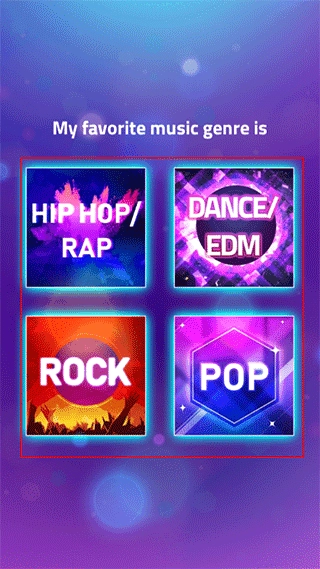 你可以根据自己的喜好挑选合适的歌曲发起挑战,跟着节奏点击方块,完成节奏挑战后,就能获取相应的分数和星星。