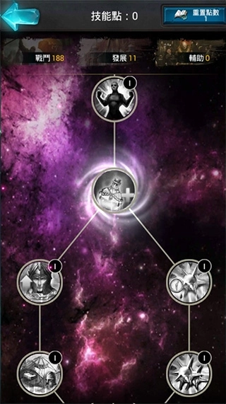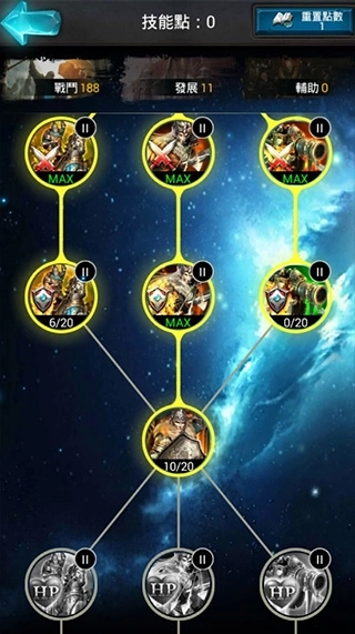 在游戏世界里,领主每次升级都能得到技能点,把这些技能点用在对应的技能上就能提升属性。领主的技能主要分为三个方向,也就是战斗、发展和辅助这三类。