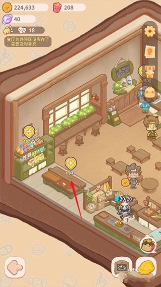 (5)自动招揽客人:当遇到带有两个饼干人图案的图标时,系统会自动吸引一小批客人;若遇到类似飞机形状的图标,则会自动招揽一大批客人(这些自动招揽来的客人头上会带有小旗子标识)。