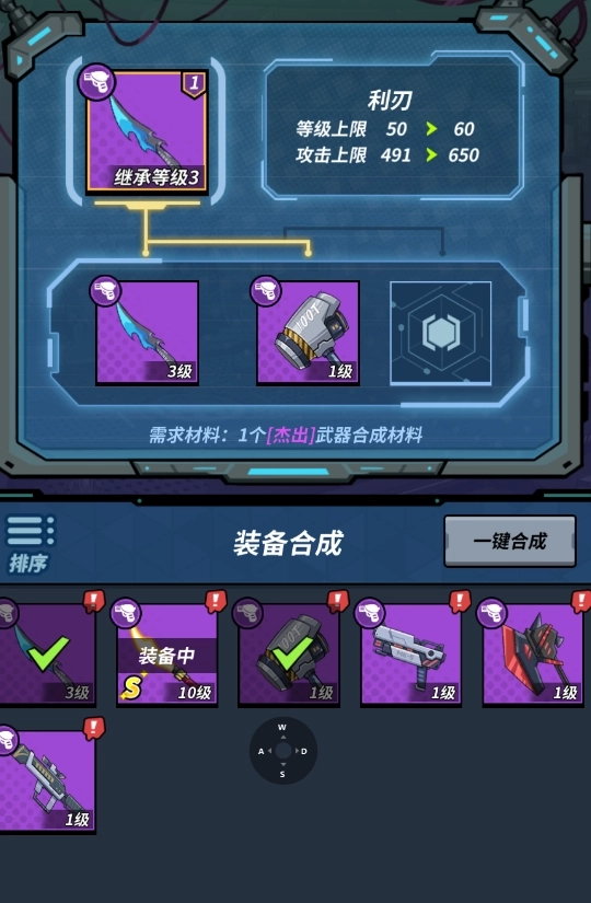 对于新手来说,选择利刃类武器比较合适,因为它能自动攻击;而其他类型的武器则需要手动调整攻击方向,还得掌握一定的使用规律,操作起来相对麻烦。另外,武器是可以升级的,每种武器也都有对应的辅助技能。