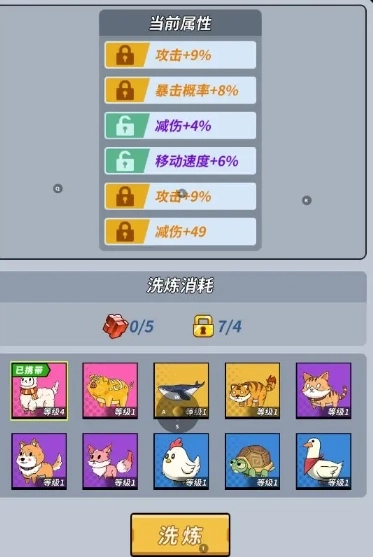 宠物的属性类别包括:攻击、减伤、暴击概率、移动速度和防御。每个宠物都具备不同的属性副属性,宠物列表里所有宠物的属性总和,会叠加到出战角色身上。