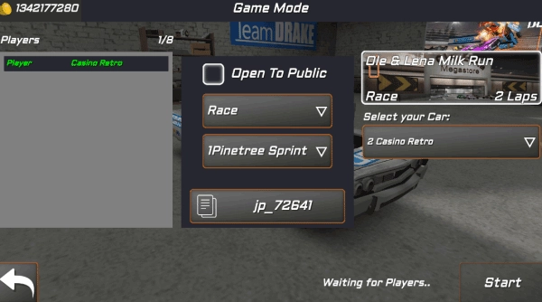 1、当准备就绪后,进入赛车界面,点击“Multiplayer”创建房间。
