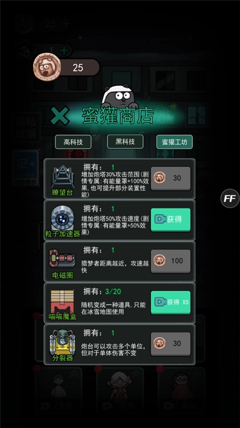 效果:赋予炮塔窃取金币的能力,该能力的强弱与炮塔等级相关(剧情限定:炮台能够对多个单位发起攻击,不过针对单个目标的伤害较低)