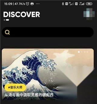 1、打开MOO音乐后,在主页的DISCOVER板块,你可以输入自己想听的音乐。
