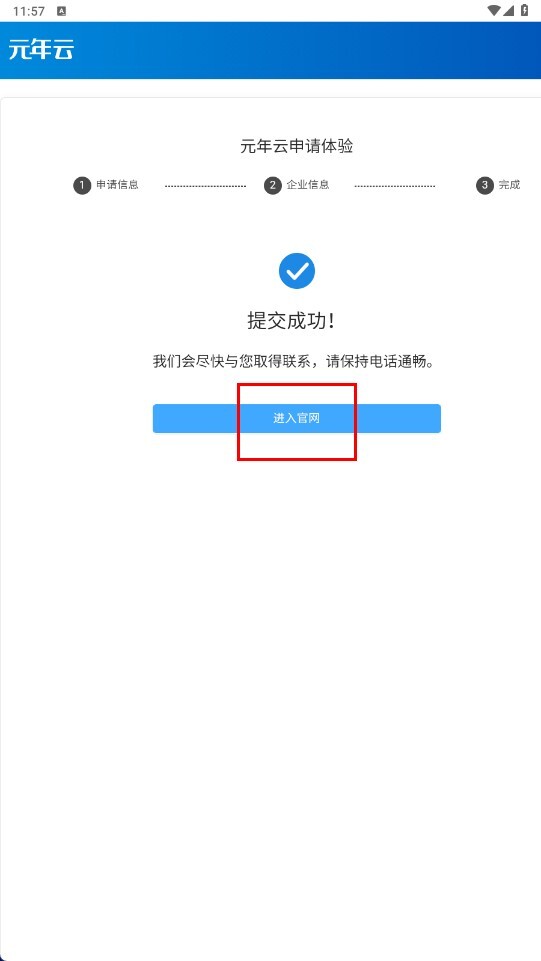 提交成功后,您可以点击【进入-功能按钮】来访问元年云。